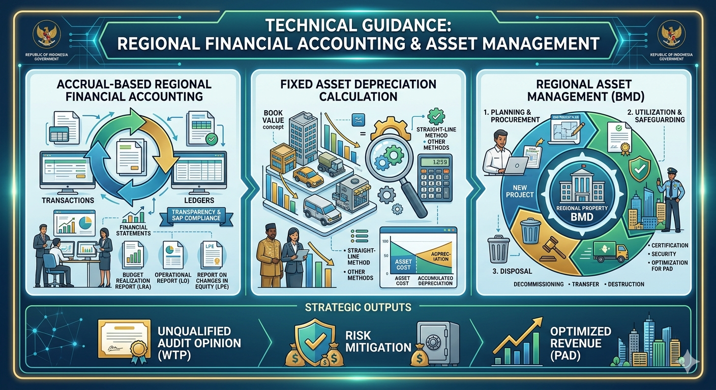 Bimtek Akuntansi Keuangan Daerah, Penyusutan Aset Tetap, dan Pengelolaan Barang Milik Daerah (BMD) adalah program pelatihan komprehensif yang dirancang untuk memperkuat tata kelola fiskal dan aset di lingkungan pemerintah daerah. Fokus utamanya adalah menciptakan laporan keuangan yang akurat, transparan, dan sesuai dengan Standar Akuntansi Pemerintahan (SAP).