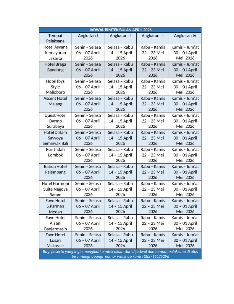 - Calon peserta bimtek wajib melakukan pendaftaran dengan menghubungi kami, 3 hari sebelum pelaksanaan pelatihan